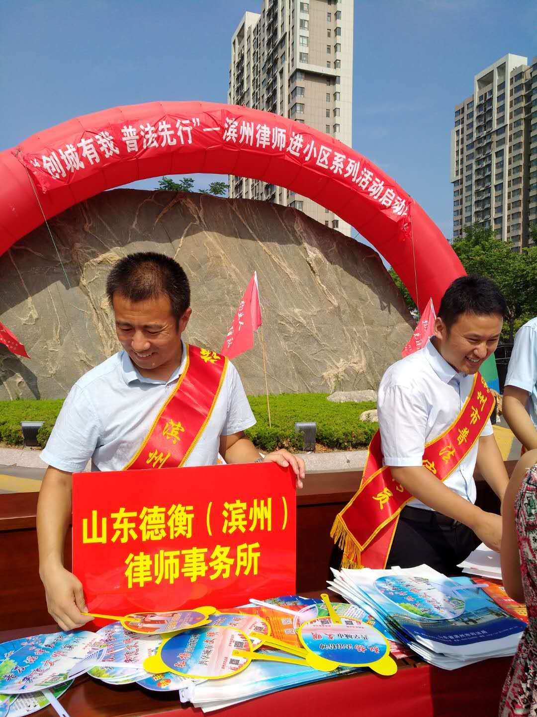8月4日上午,市司法局舉行“創(chuàng)城有我,普法先行——濱州律師在行動(dòng)”暨300名律師進(jìn)300小區(qū)系列普法活動(dòng)啟動(dòng)儀式。山東德衡(濱州)律師事務(wù)所張花鮮、李國峰律師全程參與宣傳《民法典》。